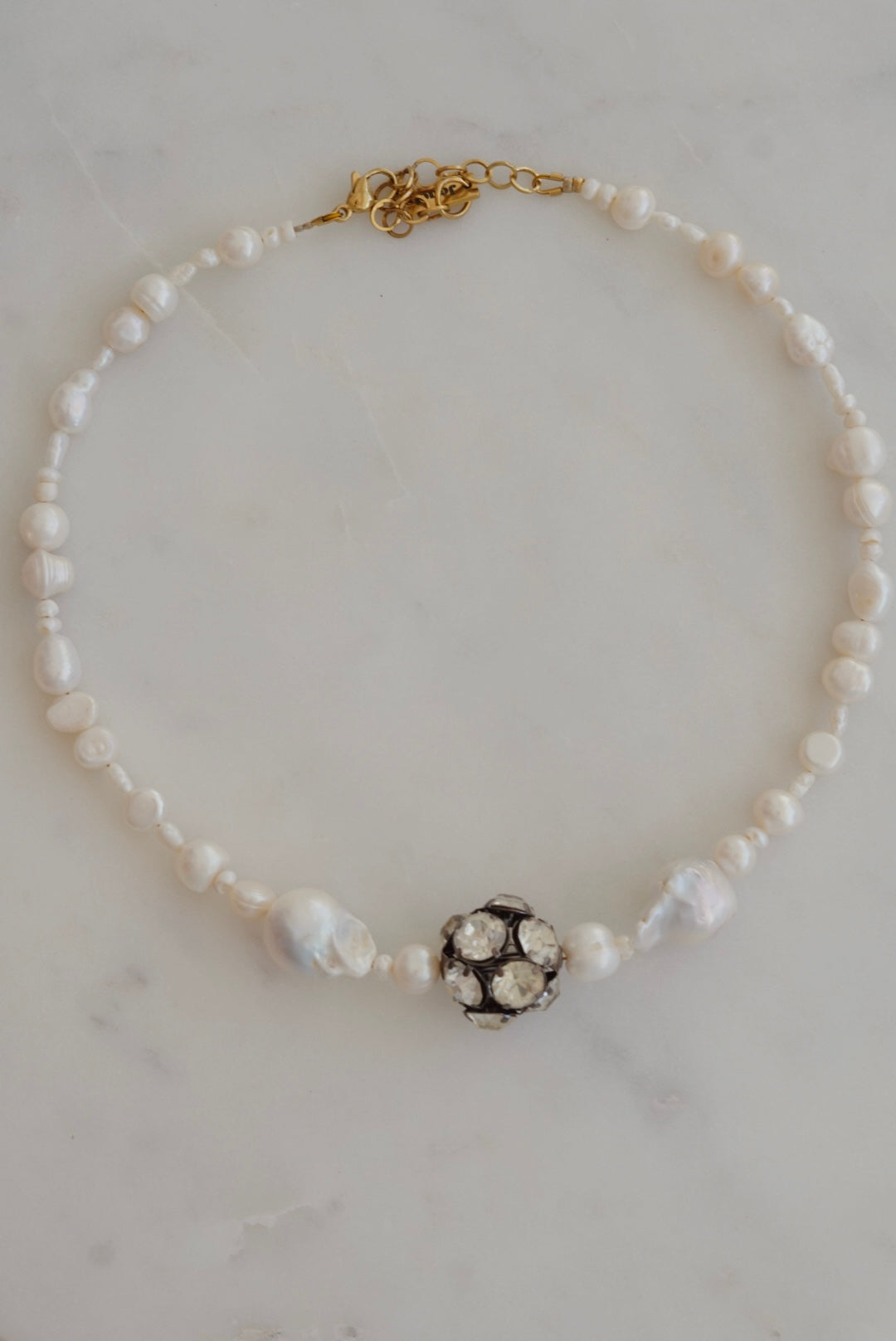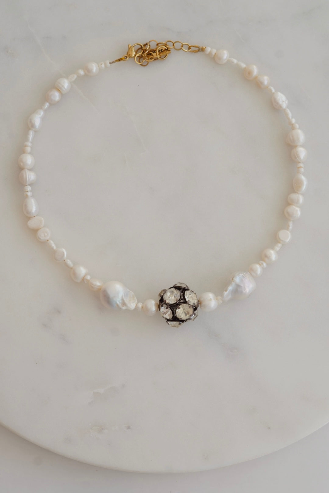 Handmade κολιέ από μαργαριτάρια και ατσάλινο στοιχείο με ζιργκον