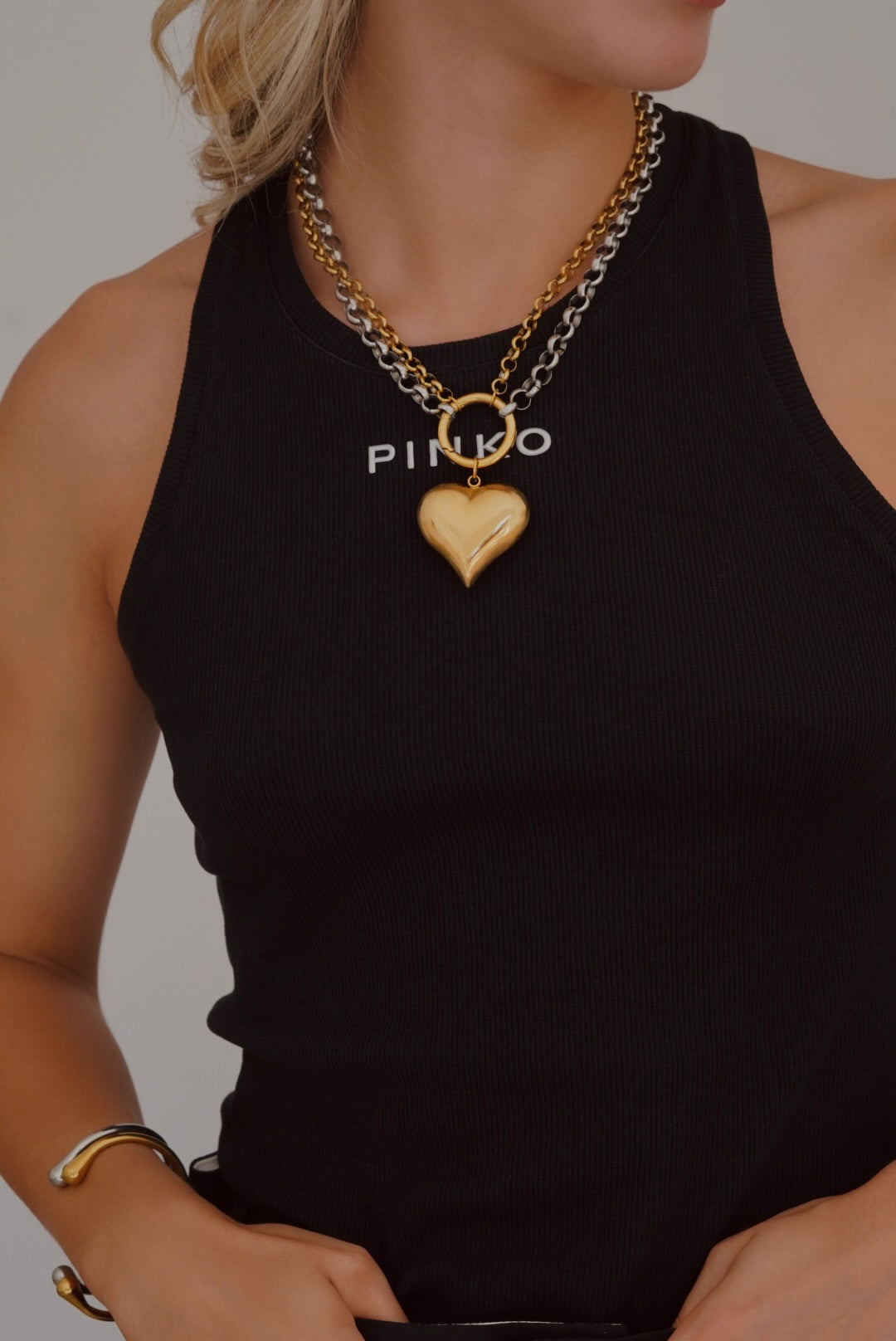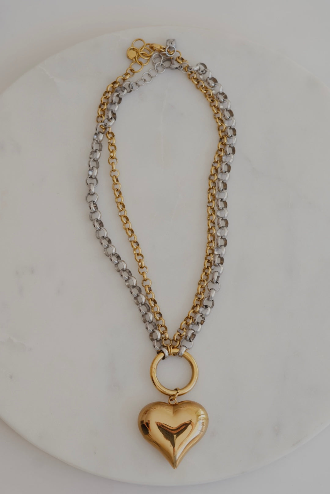 Handmade πολυμορφικό κολιέ με ατσάλινη αλυσίδα & ατσάλινο στοιχείο σε σχήμα καρδιάς