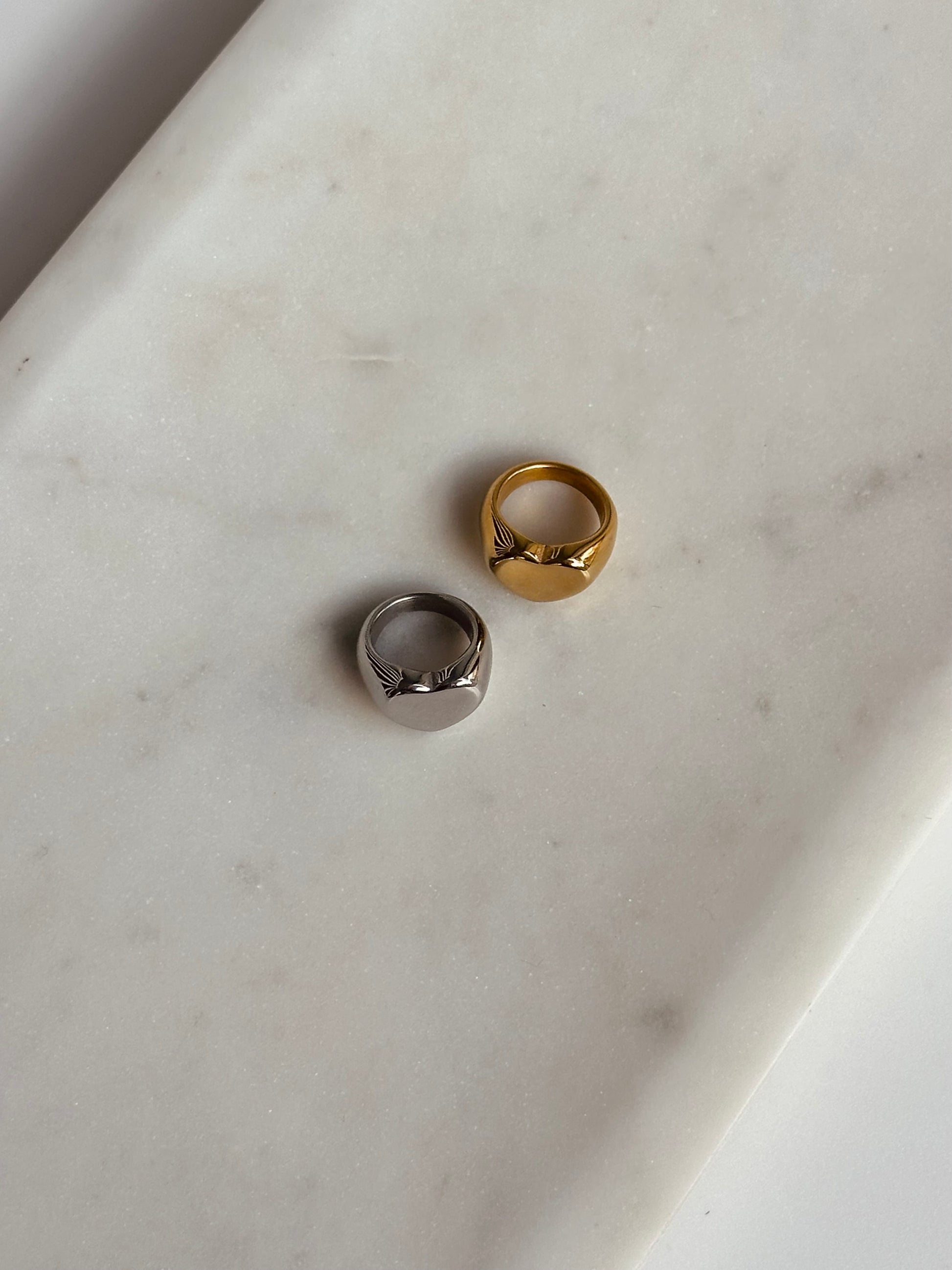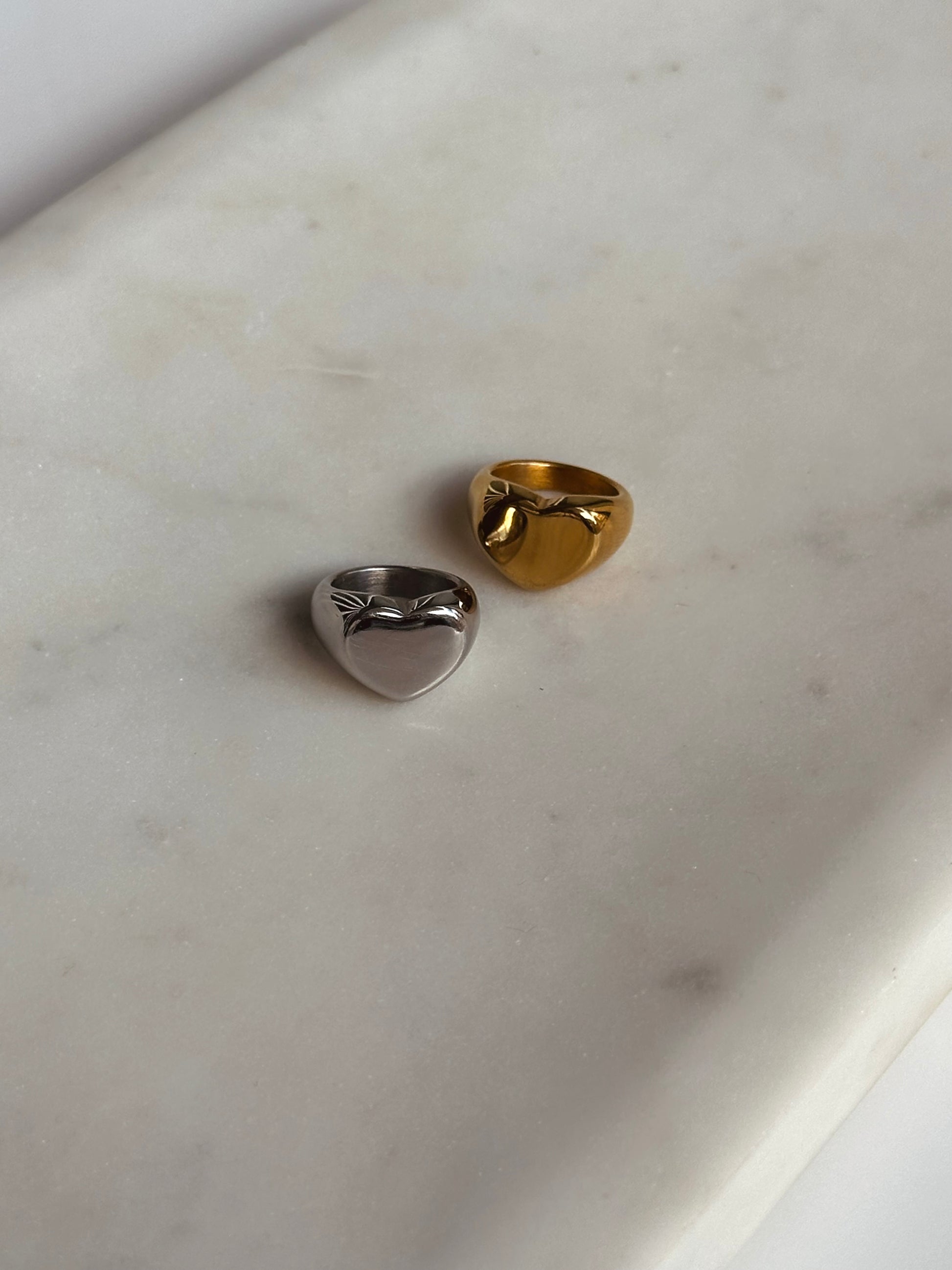 Ατσάλινο, επιχρυσωμένο δαχτυλίδι σε κομψό σχήμα καρδιάς, διαθέσιμο σε χρυσή και ασημί απόχρωση. Ιδανικό για το pinky finger, χαρίζει μια διακριτική αλλά στιλάτη λάμψη που ολοκληρώνει κάθε look.