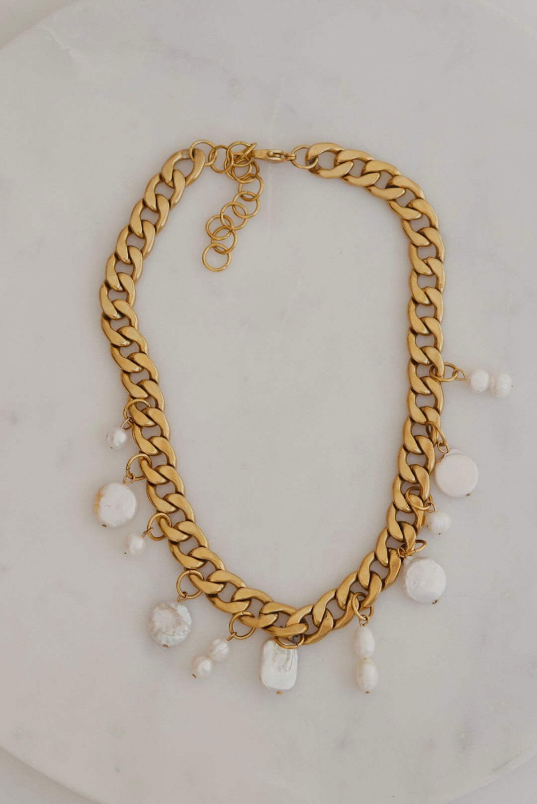 Handmade κολιέ από bold ατσάλινη επιχρυσωμένη αλυσίδα και μαργαριτάρια