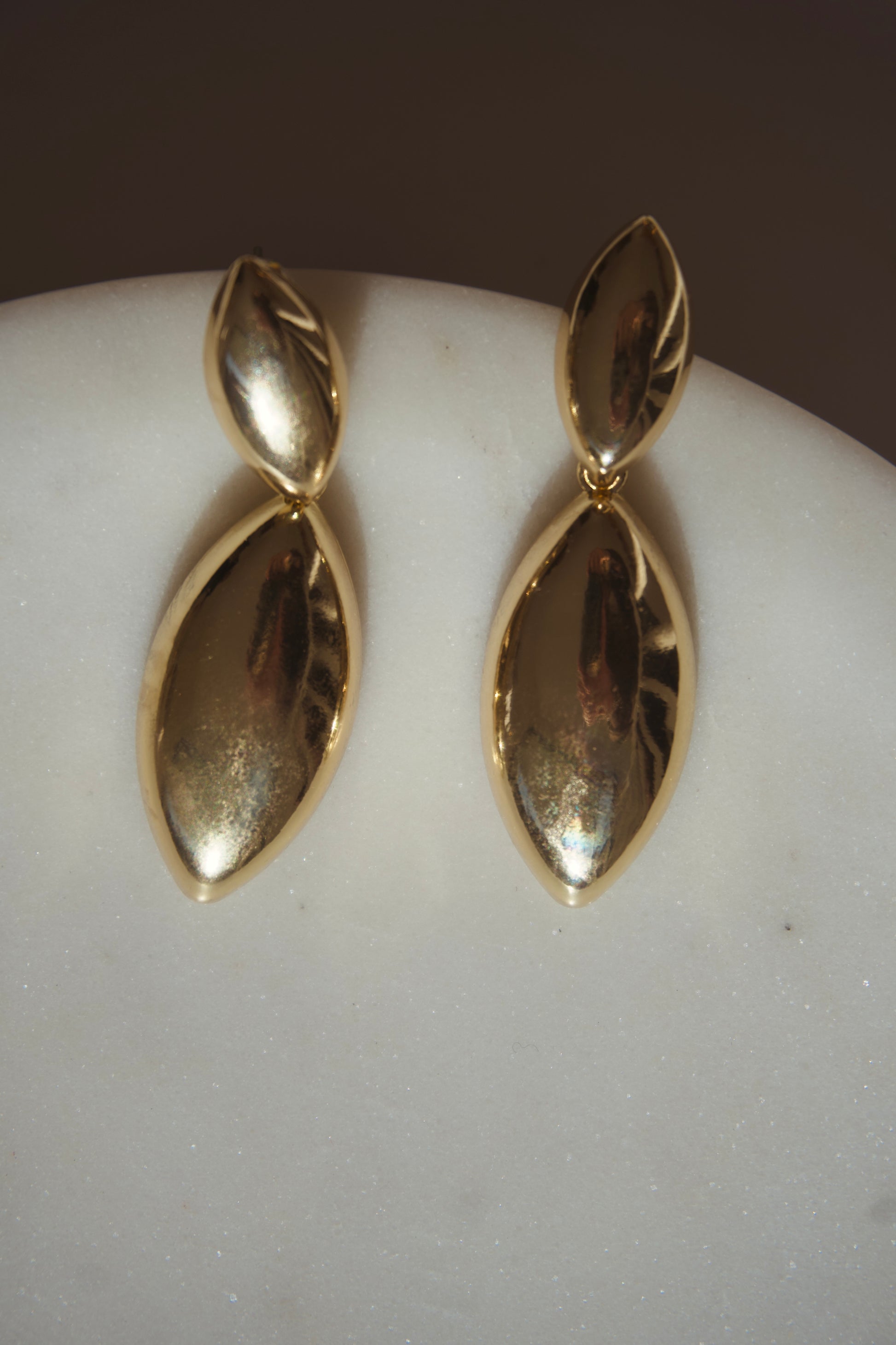 Χρυσά σκουλαρίκια με διπλή σταγόνα.