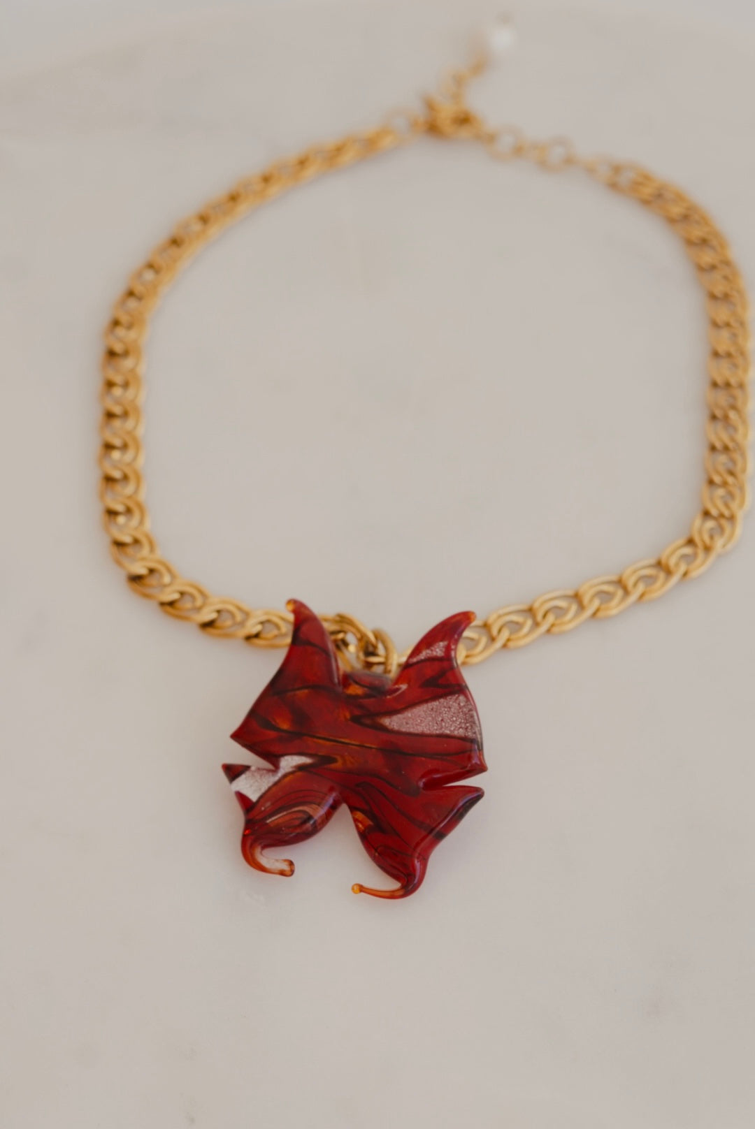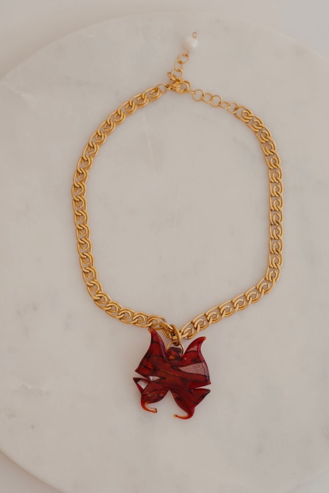 Handmade κολιέ με επιχρυσωμένη ατσάλινη αλυσίδα & στοιχείο πεταλούδας από μουράνο